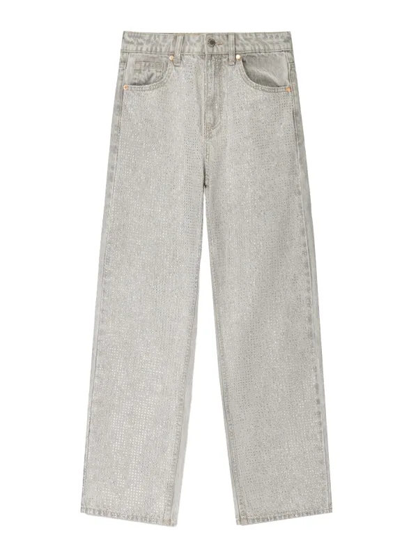 Design: Gevoerde zoom/rand, Ritssluiting, 5-pocket-style; Type sluiting: Ritssluiting; Materiaal: Denim; Motief: Effen; Details: Sierstenen; Extra's: Met halfedelstenen, Stevige stof, Riemlussen; Wassing: Light washed; Lengte: Lang/maxi; Pasvorm: Regular; Taillehoogte: Mid waist