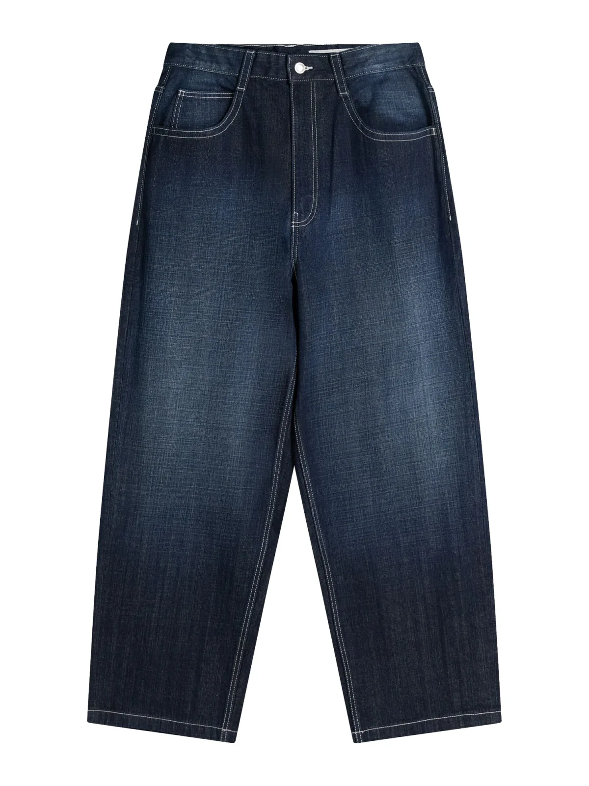 Design: Gevoerde zoom/rand, Ritssluiting, 5-pocket-style, Knop sluiting; Type sluiting: Ritssluiting; Materiaal: Denim; Motief: Effen; Details: Borduursels; Extra's: Studs, Applicaties, Contrasterende naden, Gewassen effect, Vaste grip, Riemlussen; Wassing: Heavy washed; Lengte: Lang/maxi; Pasvorm: Wide leg; Taillehoogte: Mid waist