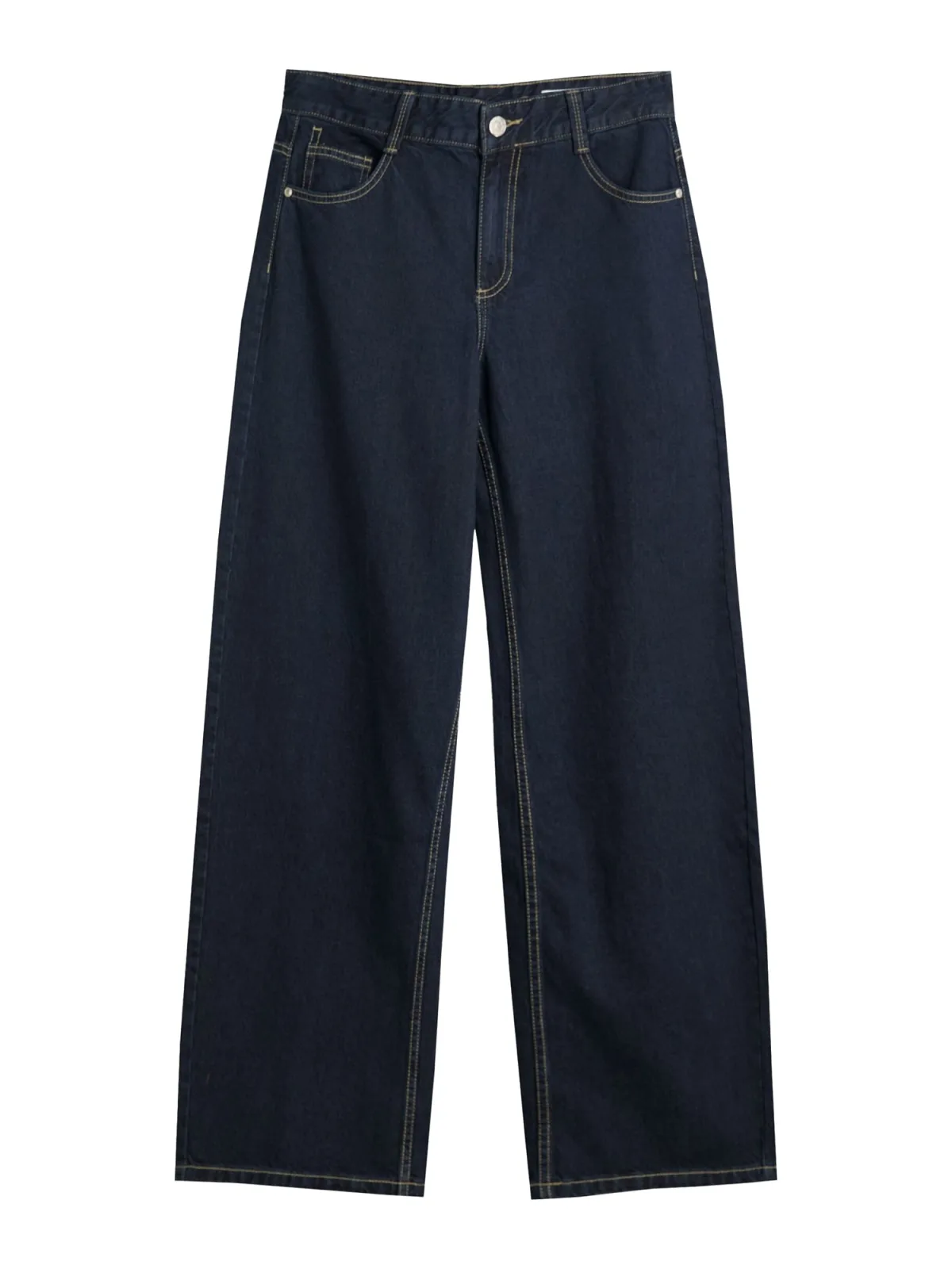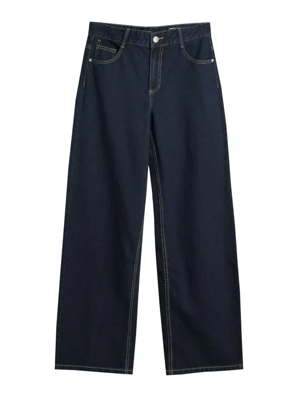 Design: Ritssluiting, 5-pocket-style; Type sluiting: Ritssluiting; Materiaal: Denim; Motief: Effen; Extra's: Studs, Contrasterende naden, Riemlussen; Wassing: Raw/unwashed; Lengte: Lang/maxi; Pasvorm: Baggy; Taillehoogte: Mid waist