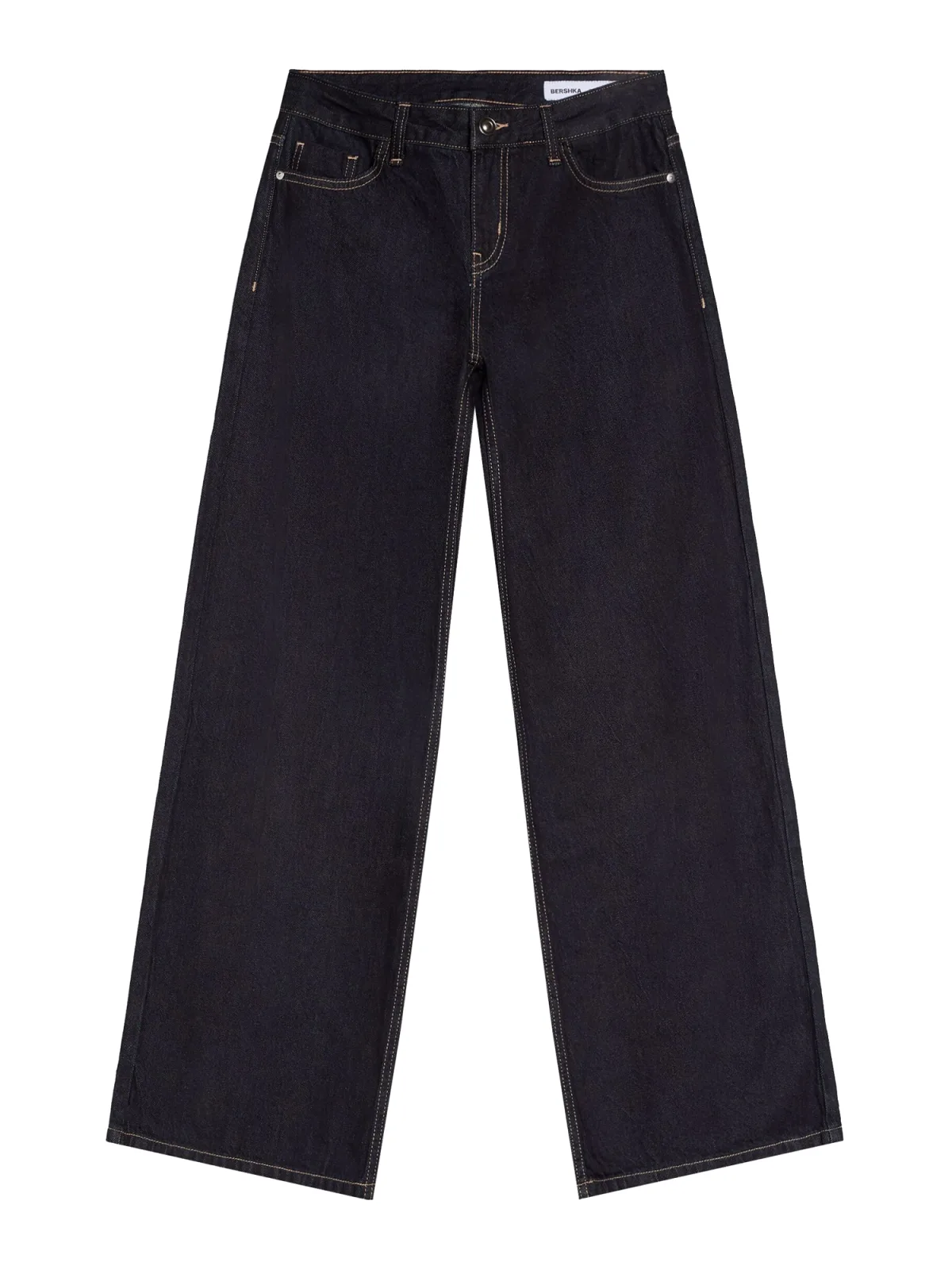 Design: Gevoerde zoom/rand, Ritssluiting; Type sluiting: Ritssluiting; Materiaal: Denim; Motief: Effen; Extra's: Contrasterende naden, Vaste grip, Riemlussen; Wassing: Rinsed/dark washed; Lengte: Lang/maxi; Pasvorm: Wide leg; Taillehoogte: Low waist