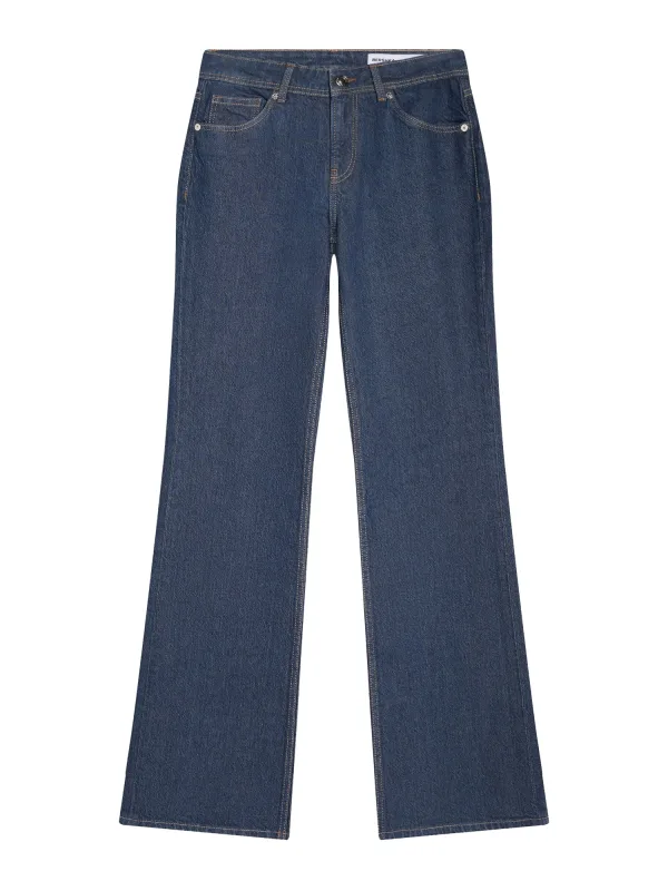Design: Gevoerde zoom/rand, Ritssluiting, 5-pocket-style; Type sluiting: Ritssluiting; Materiaal: Denim; Motief: Effen; Extra's: Contrasterende naden, Label patch/label flag, Vaste grip, Riemlussen; Wassing: Rinsed/dark washed; Lengte: Lang/maxi; Pasvorm: Bootcut; Taillehoogte: Low waist