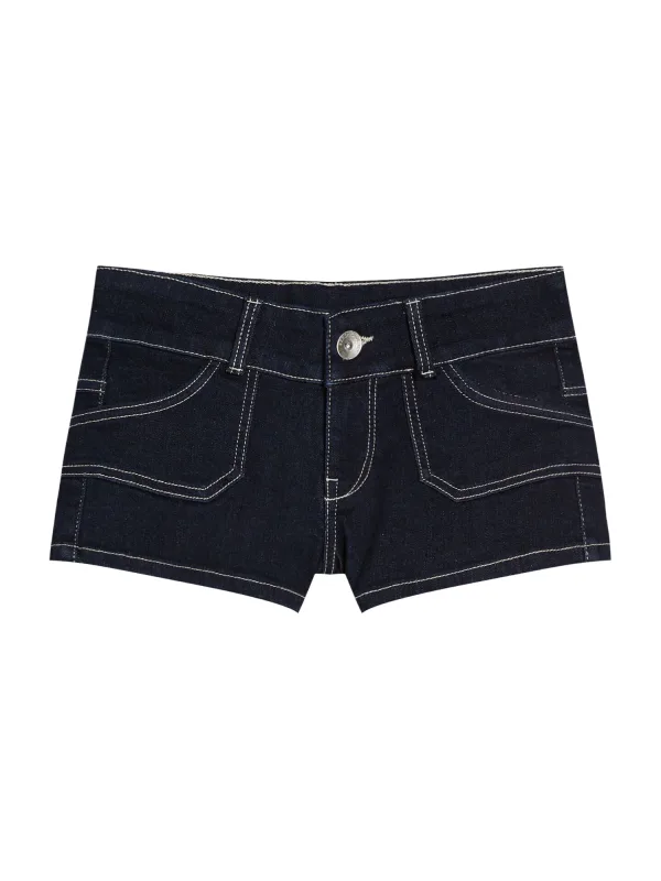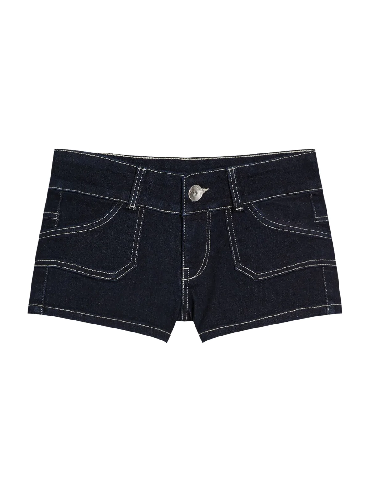 Design: Gevoerde zoom/rand, Ritssluiting, Zakken aan de zijkant; Type sluiting: Ritssluiting; Materiaal: Denim; Motief: Effen; Extra's: Contrasterende naden, Stevige stof, Riemlussen; Wassing: Raw/unwashed; Lengte: Kort/mini; Pasvorm: Slimfit; Taillehoogte: Low waist