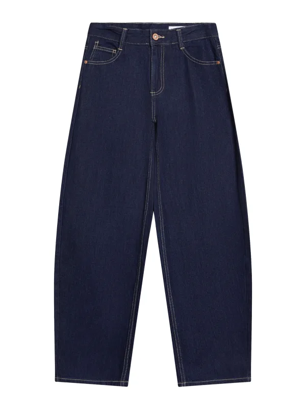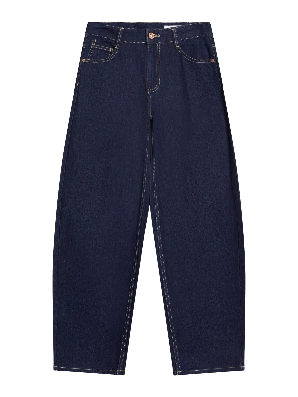 Design: Ritssluiting, 5-pocket-style; Type sluiting: Ritssluiting; Materiaal: Denim; Motief: Effen; Extra's: Contrasterende naden, Riemlussen; Wassing: Rinsed/dark washed; Lengte: Lang/maxi; Pasvorm: Vat; Taillehoogte: Mid waist