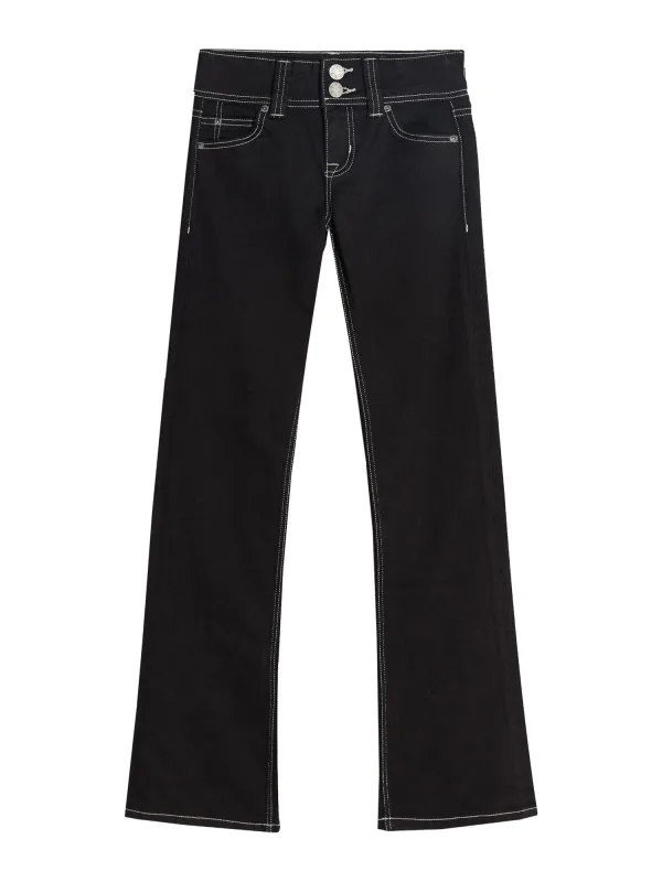 Design: Gevoerde zoom/rand, Ritssluiting, 5-pocket-style; Type sluiting: Ritssluiting; Materiaal: Denim; Motief: Effen; Extra's: Contrasterende naden, Vaste grip, Riemlussen; Wassing: Colored denim; Lengte: Lang/maxi; Pasvorm: Bootcut; Taillehoogte: Mid waist
