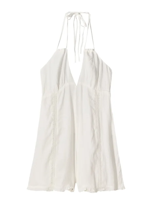 Design: Gevoerde zoom/rand, Diepe snit/decolleté, Om te knopen/binden; Materiaal: Viscose; Halstype: V-hals; Motief: Effen; Soort bandjes: Haltermodel; Details: Kant, Gedrapeerd; Extra's: Op staal naden, Koele grip; Lengte: Kort/mini; Pasvorm: Normale pasvorm; Armlengte: Mouwloos