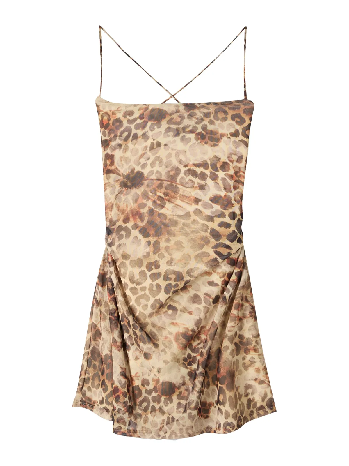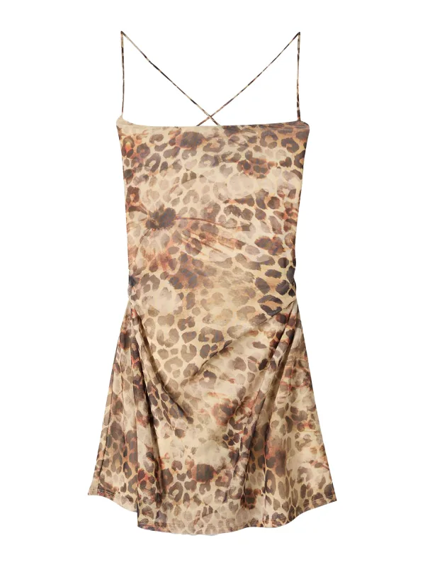 Design: Gevoerde zoom/rand, Om te knopen/binden, Gekruiste bandjes; Halstype: Carréhals; Motief: Dierenprint; Soort bandjes: Spaghettibandjes; Details: Gedrapeerd, Backless; Extra's: All-over patroon, Buigzame grip; Lengte: Kort/mini; Snit: Getailleerd; Pasvorm: Slanke pasvorm; Armlengte: Mouwloos