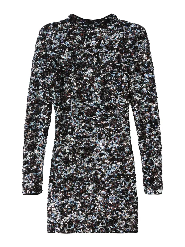 Design: Gevoerde zoom/rand, Rechte zoom, Rug rits, Vetering, Knop sluiting, Uitgesneden rug; Type sluiting: Ritssluiting; Halstype: Opstaande kraag; Motief: Mélange; Details: Cut-outs, Pailletten; Extra's: Glanzend, All-over patroon, Met textuur; Lengte: Kort/mini; Pasvorm: Slanke pasvorm; Armlengte: Lange mouw