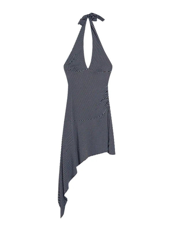 Design: Asymmetrische zoom, Om te knopen/binden; Halstype: V-hals; Motief: Krijtstrepen; Soort bandjes: Haltermodel; Details: Gedrapeerd; Extra's: All-over patroon, Lichte stof; Lengte: Kort/mini; Pasvorm: Normale pasvorm; Armlengte: Mouwloos