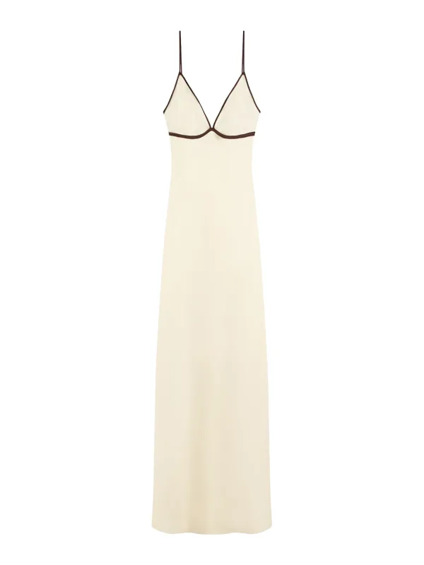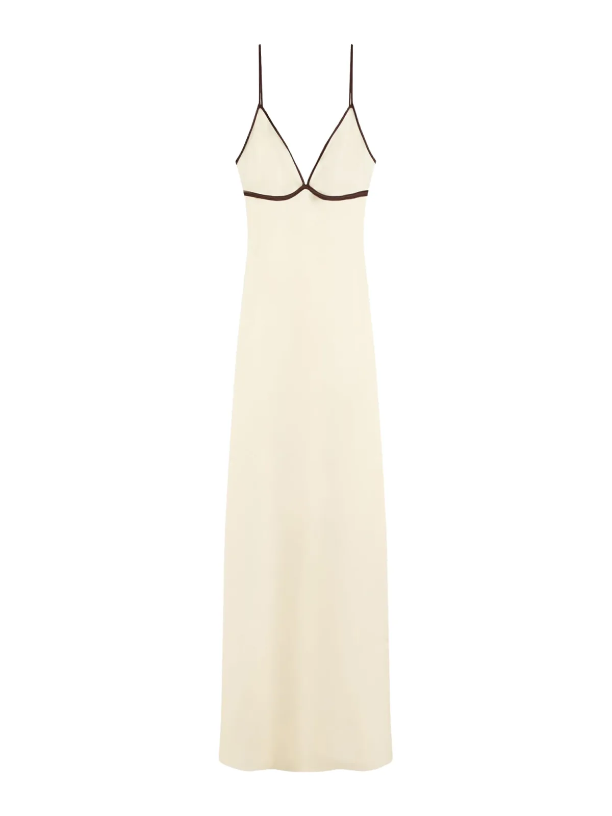 Design: Rug rits, Diepe snit/decolleté, Contrasterende inserts; Type sluiting: Ritssluiting; Materiaal: Satijn; Halstype: V-hals; Motief: Effen; Soort bandjes: Spaghettibandjes; Extra's: Gladde stof, Lichte stof; Lengte: 7/8 lengte; Snit: Getailleerd; Pasvorm: Slanke pasvorm; Armlengte: Mouwloos