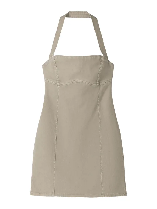 Design: Gevoerde zoom/rand, Split, Diepe snit/decolleté; Type sluiting: Ritssluiting; Materiaal: Denim; Halstype: Carréhals; Motief: Effen; Soort bandjes: Haltermodel; Extra's: Op staal naden, Voelt zacht aan; Lengte: Kort/mini; Snit: Figuur omarmend; Pasvorm: Aansluitende pasvorm; Armlengte: Mouwloos
