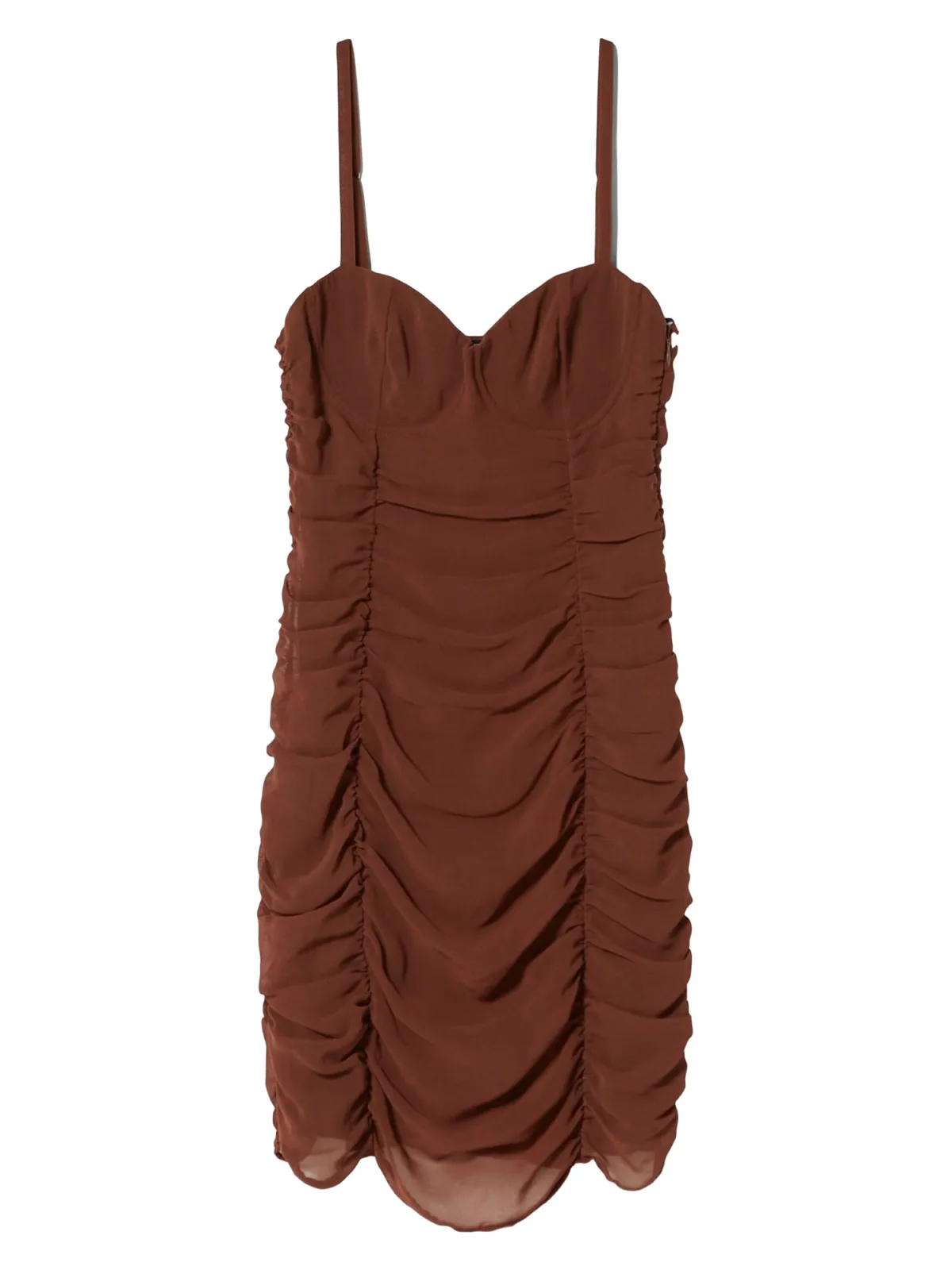 Design: Diepe snit/decolleté, Ritszakken aan de zijkant; Type sluiting: Ritssluiting; Motief: Effen; Soort bandjes: Spaghettibandjes; Details: Gedrapeerd; Extra's: Verstelbare bandjes, Op staal naden, Gladde stof; Lengte: Kort/mini; Pasvorm: Slanke pasvorm; Armlengte: Mouwloos