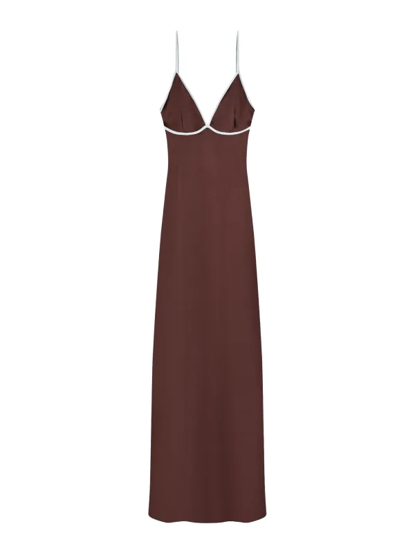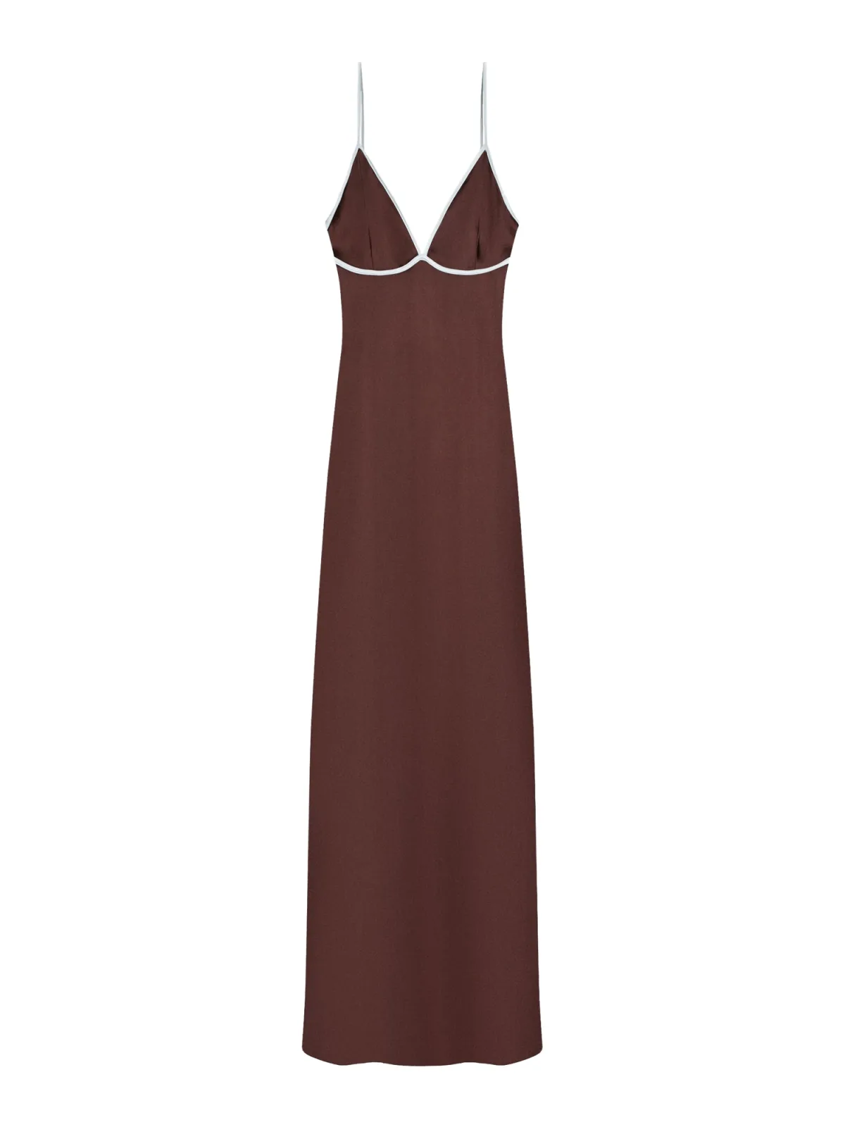 Design: Gevoerde zoom/rand, Split, Rechte zoom, Contrasterende inserts; Type sluiting: Ritssluiting; Materiaal: Satijn; Halstype: V-hals; Motief: Effen; Soort bandjes: Spaghettibandjes; Extra's: Gladde stof, Lichte stof; Lengte: 7/8 lengte; Snit: Getailleerd; Pasvorm: Slanke pasvorm; Armlengte: Mouwloos