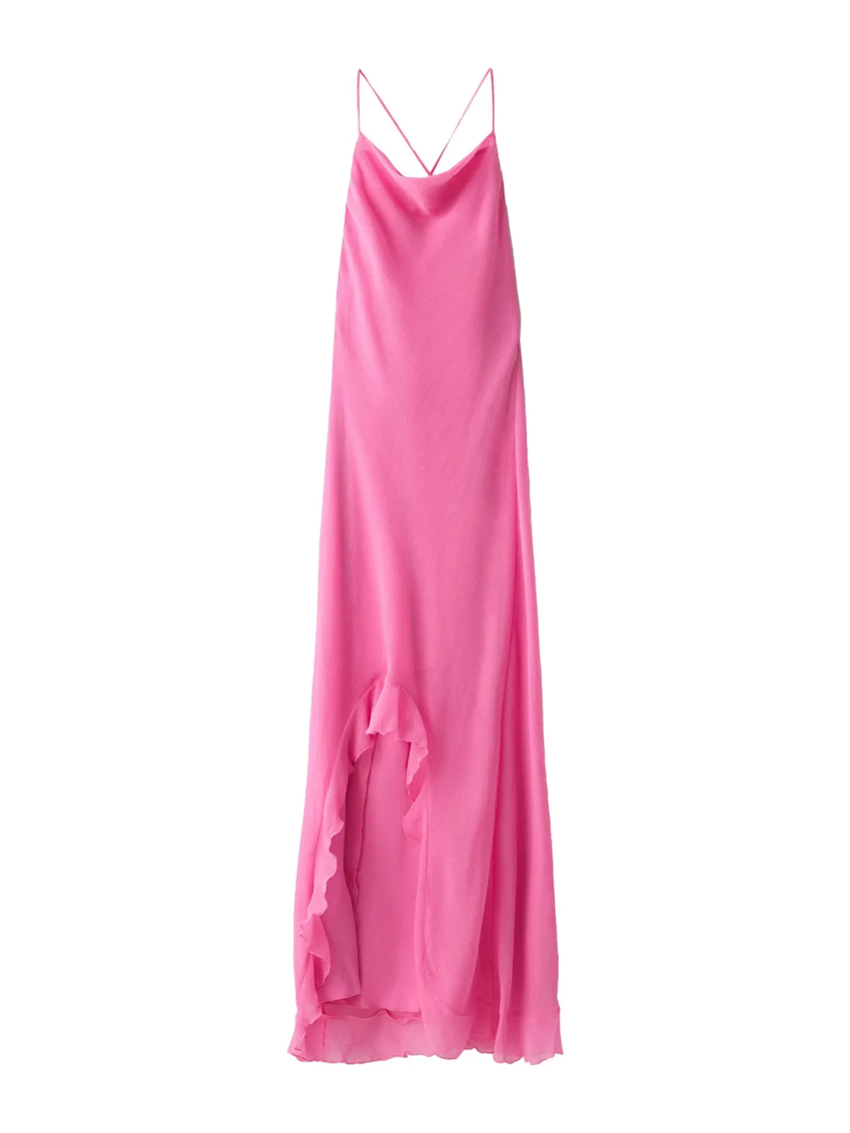 Design: Beenopening, Met onderjurk, Ronde zoom, Verlengd rugpand, Gekruiste bandjes; Halstype: V-hals; Motief: Effen; Details: Volant, Gedrapeerd, Backless; Extra's: Op staal naden, Gladde stof; Lengte: Lang/maxi; Snit: Getailleerd; Pasvorm: Slanke pasvorm; Armlengte: Mouwloos