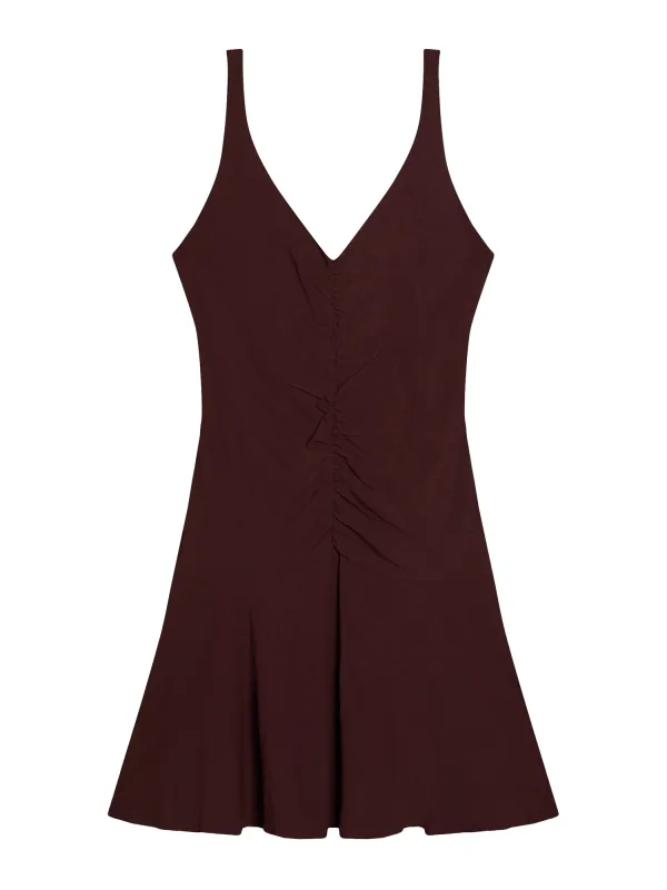 Design: Gevoerde zoom/rand, Met onderjurk, Diepe snit/decolleté, Uitgesneden rug; Materiaal: Jersey; Halstype: V-hals; Motief: Effen; Soort bandjes: Normale bandjes; Details: Gedrapeerd; Extra's: Op staal naden, Gladde stof, Koele grip; Lengte: Kort/mini; Snit: Getailleerd; Pasvorm: Slanke pasvorm; Armlengte: Mouwloos
