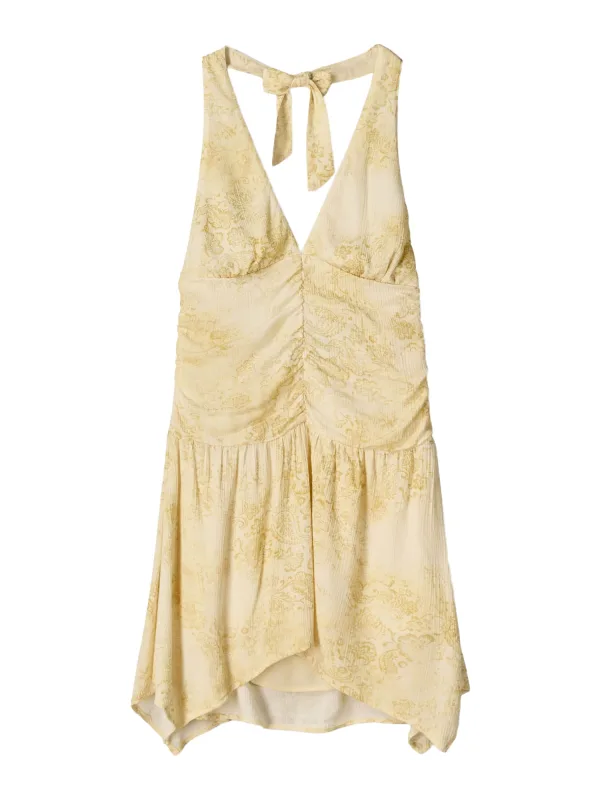 Design: Gevoerde zoom/rand, Om te knopen/binden; Halstype: V-hals; Motief: Paisley; Details: Volant, Gedrapeerd, Backless; Extra's: Gladde stof; Lengte: Lang/maxi; Snit: Getailleerd; Pasvorm: Slanke pasvorm; Armlengte: Mouwloos