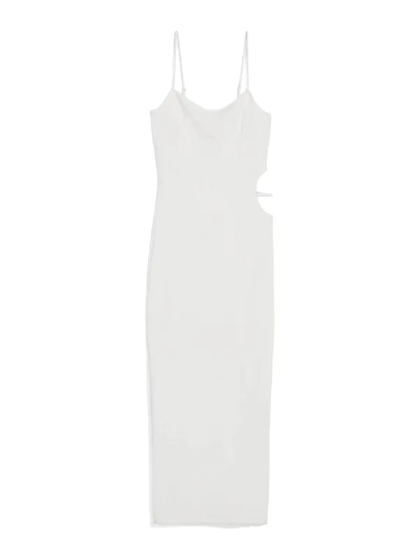 Design: Gevoerde zoom/rand, Rechte zoom; Halstype: Ronde hals; Motief: Effen; Soort bandjes: Spaghettibandjes; Details: Cut-outs, Sierstenen; Extra's: Op staal naden, Voelt zacht aan; Lengte: 3/4 lengte; Pasvorm: Normale pasvorm; Armlengte: Mouwloos
