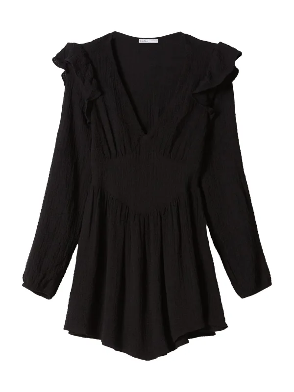 Design: Gevoerde zoom/rand, Diepe snit/decolleté; Halstype: V-hals; Motief: Effen; Details: Volant, Gedrapeerd; Extra's: Op staal naden, Lichte stof; Lengte: Kort/mini; Pasvorm: Normale pasvorm; Armlengte: Lange mouw