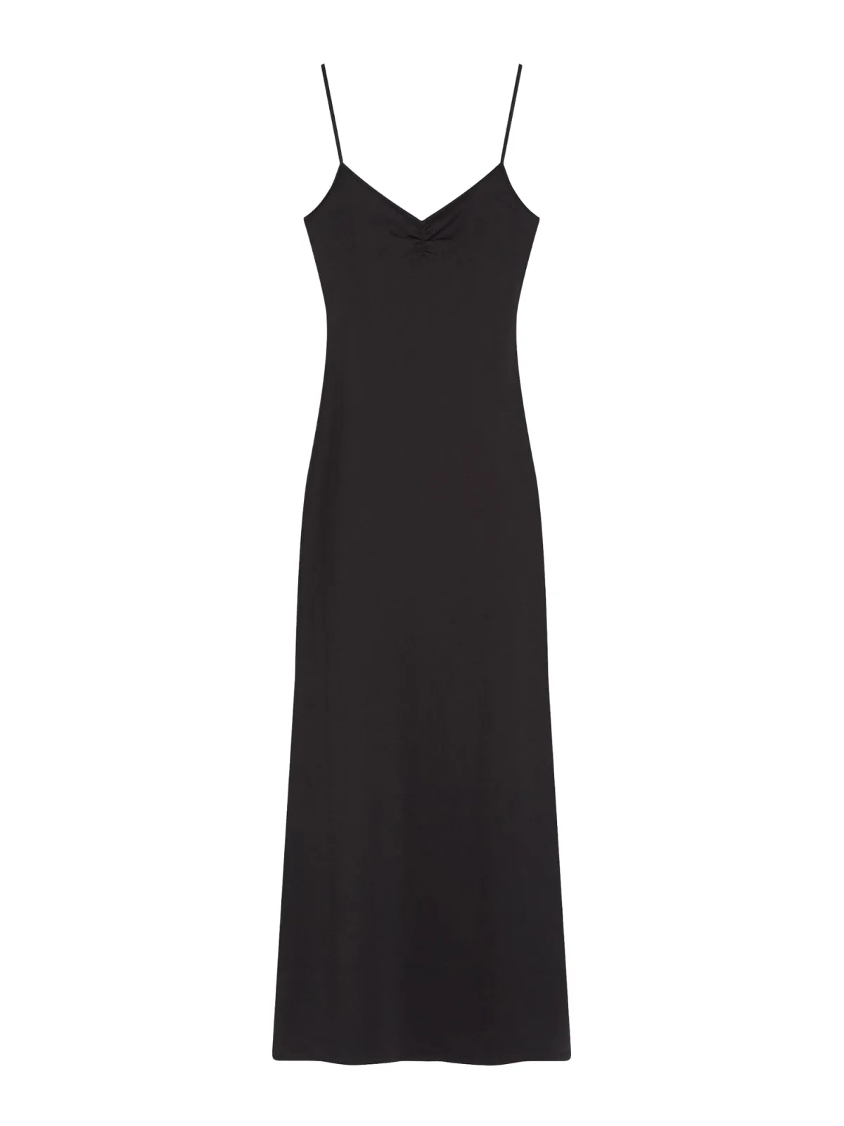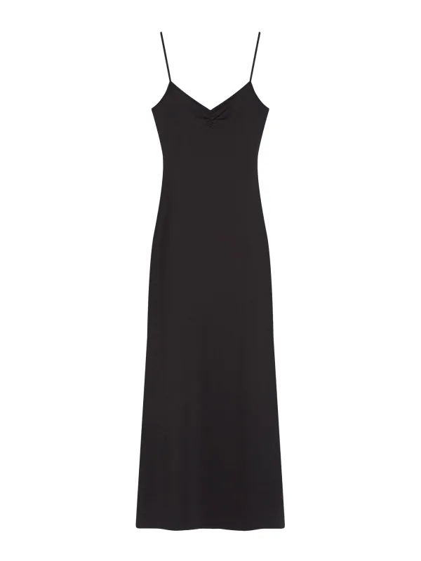 Design: Gevoerde zoom/rand, Rechte zoom; Materiaal: Jersey; Halstype: V-hals; Motief: Effen; Soort bandjes: Spaghettibandjes; Details: Gedrapeerd, Backless; Extra's: Op staal naden, Voelt zacht aan; Lengte: 7/8 lengte; Snit: Figuur omarmend; Pasvorm: Aansluitende pasvorm; Armlengte: Mouwloos