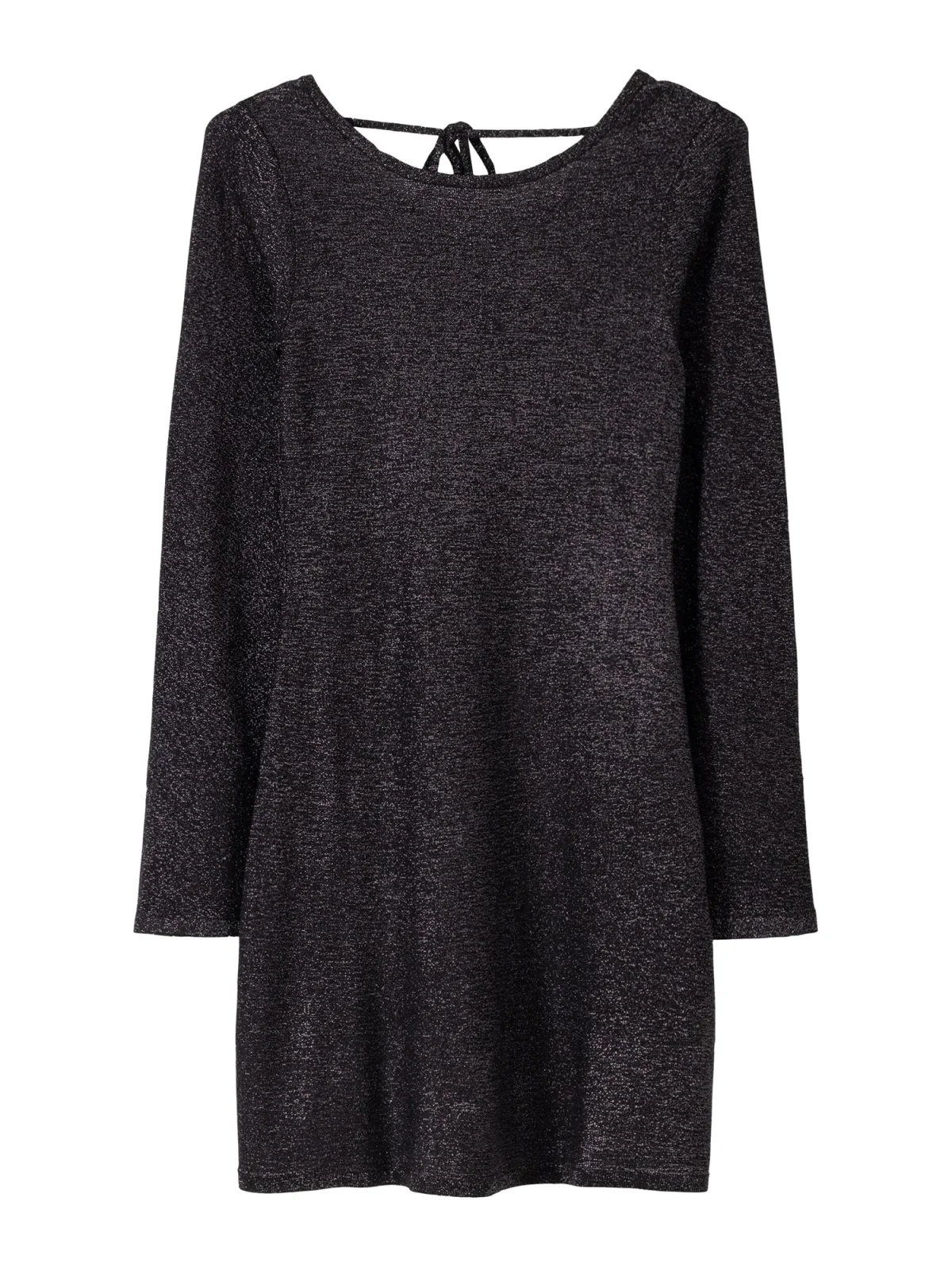 Design: Rechte zoom, Getailleerd model, Om te knopen/binden; Materiaal: Viscose; Halstype: Ronde hals; Motief: Effen; Details: Backless; Extra's: Glitterend, Koele grip; Lengte: Kort/mini; Snit: Figuur omarmend; Pasvorm: Slanke pasvorm; Armlengte: Lange mouw