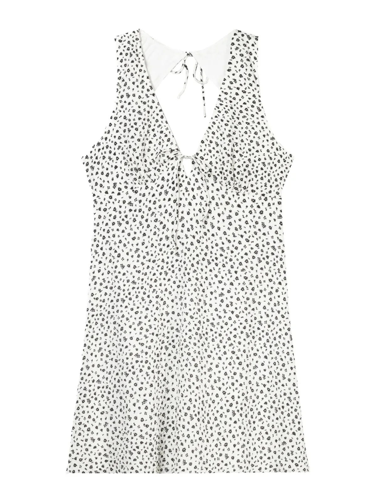 Design: Gevoerde zoom/rand, Om te knopen/binden; Halstype: V-hals; Motief: Bloemenprint; Soort bandjes: Brede bandjes; Details: Cut-outs, Gedrapeerd; Extra's: All-over patroon, Gladde stof; Lengte: Kort/mini; Snit: Getailleerd; Pasvorm: Normale pasvorm; Armlengte: Mouwloos