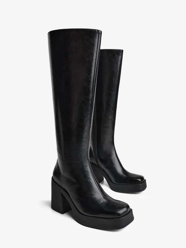 Design: Gevoerd, Ritszakken aan de zijkant, Pumps met enkelbandje; Type sluiting: Ritssluiting; Type hak: Blokhak; Materiaal: Imitatieleder; Motief: Effen; Plateau: Met plateau; Materiaal: Lak; Schoenneus: Vierkante neus; Extra's: Glanzend, Op staal naden, Flexibele zool; Hakhoogte: Hoge hak (7-10 cm)