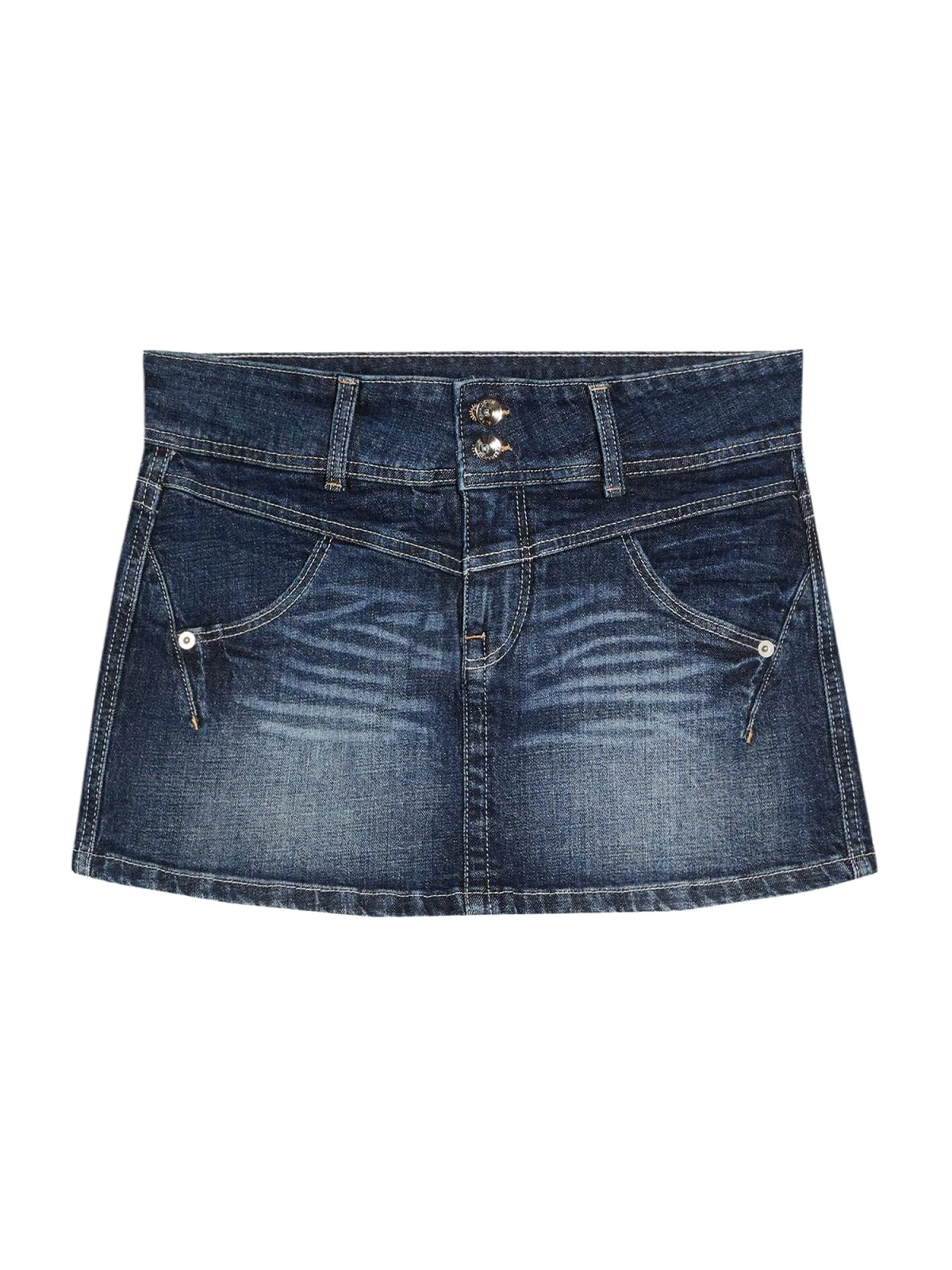 Design: Gevoerde zoom/rand, Knop placket, Achterzak, Zakken aan de zijkant; Type sluiting: Ritssluiting; Materiaal: Denim; Motief: Effen; Rokvorm: Minirok; Extra's: Contrasterende naden, Vaste grip, Riemlussen; Lengte: Kort/mini; Pasvorm: Normale pasvorm; Taillehoogte: Low waist
