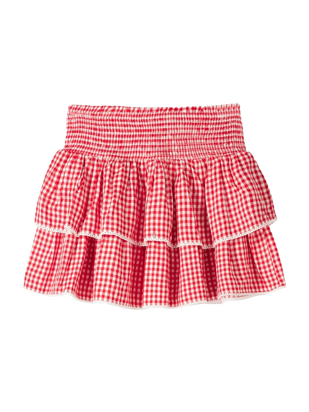 Design: Wijde taille, Elastische taille/zoom; Materiaal: Viscose; Motief: Geruit; Rokvorm: Volantrok; Details: Ruches, Gedrapeerd; Extra's: All-over patroon, Gladde stof; Lengte: Kort/mini; Pasvorm: Normale pasvorm