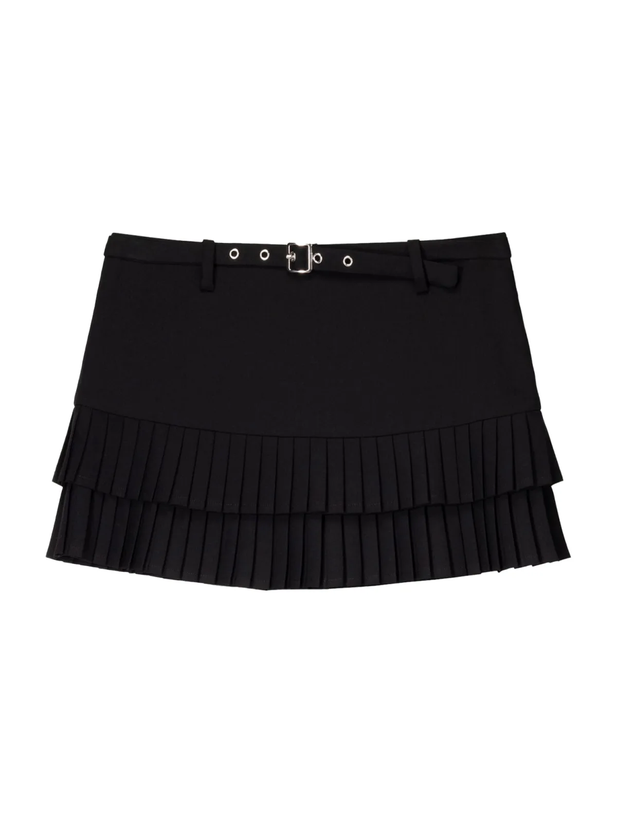 Design: Recht model, Met riem; Motief: Effen; Rokvorm: Minirok; Details: Volant, Plissé; Extra's: Op staal naden, Metalen oogjes, Riemlussen; Lengte: Kort/mini; Pasvorm: Normale pasvorm