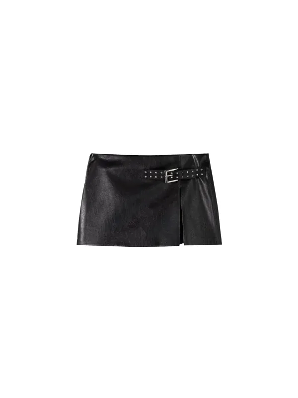 Design: Beenopening, Gesp; Materiaal: Imitatieleder; Motief: Effen; Rokvorm: Minirok; Extra's: Glanzend, Metalen oogjes; Lengte: Kort/mini; Pasvorm: Slanke pasvorm