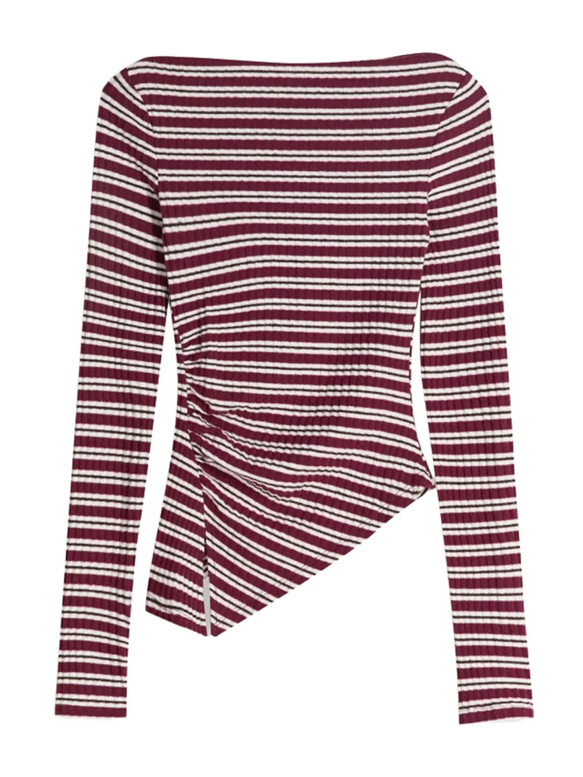 Design: Gevoerde zoom/rand, Asymmetrische zoom; Materiaal: Jersey; Halstype: Boothals; Motief: Gestreept; Details: Gedrapeerd; Extra's: All-over patroon, Voelt zacht aan, Crinkle look; Pasvorm: Slanke pasvorm; Armlengte: Lange mouw; Lengte: Normale lengte