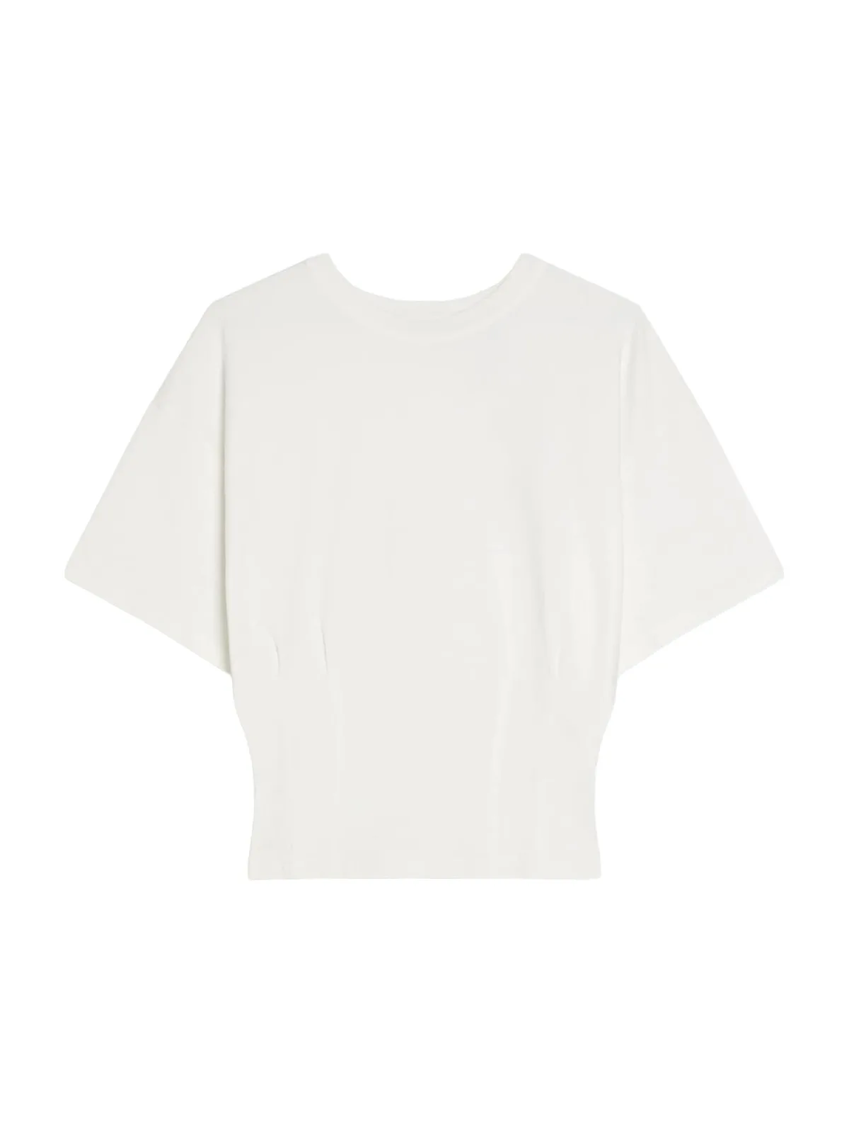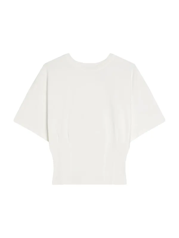 Design: Geribbelde kraag, Overcut schouder; Materiaal: Jersey; Halstype: Ronde hals; Motief: Effen; Details: Gedrapeerd; Extra's: Op staal naden, Voelt zacht aan; Pasvorm: Normale pasvorm; Armlengte: Halve mouw; Lengte: Normale lengte
