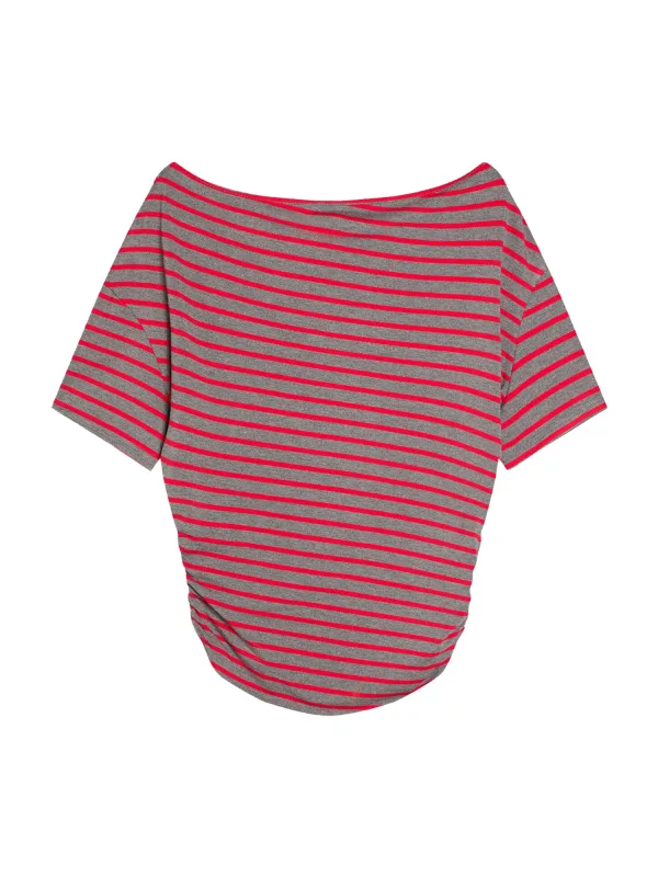 Design: Gevoerde zoom/rand, Ronde zoom; Materiaal: Jersey; Halstype: Boothals; Motief: Gestreept; Details: Gedrapeerd; Extra's: All-over patroon, Voelt zacht aan; Pasvorm: Normale pasvorm; Armlengte: Kwartmouw; Lengte: Normale lengte