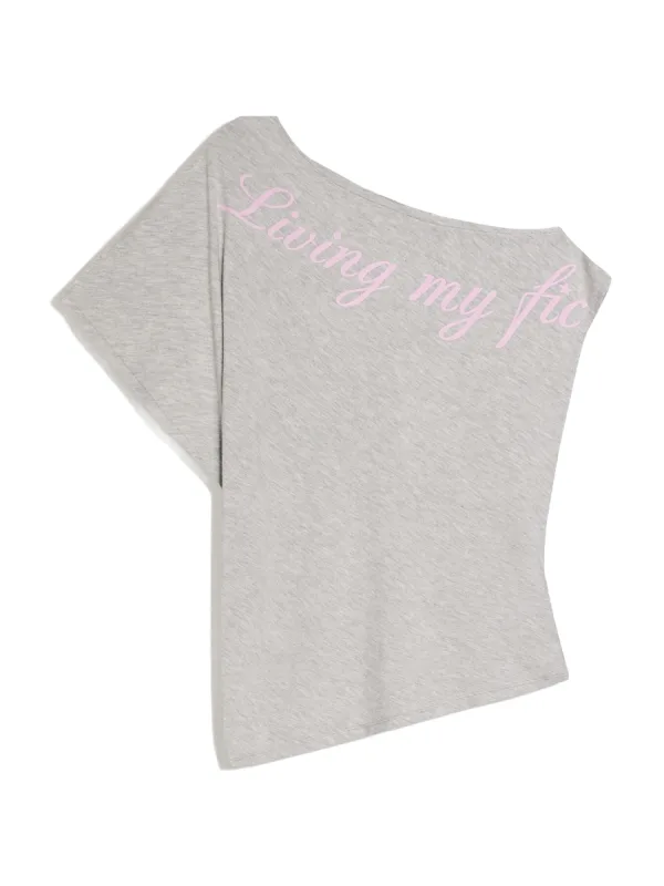 Design: Gevoerde zoom/rand, Asymmetrische zoom; Materiaal: Jersey; Halstype: Carmen hals; Motief: Tekst print; Extra's: Op staal naden, Voelt zacht aan; Pasvorm: Normale pasvorm; Armlengte: Kwartmouw; Lengte: Normale lengte