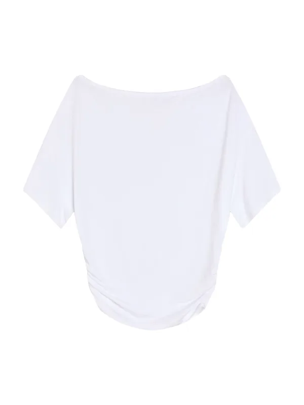 Design: Gevoerde zoom/rand, Rechte zoom; Materiaal: Jersey; Halstype: Boothals; Motief: Effen; Details: Gedrapeerd; Extra's: Op staal naden, Voelt zacht aan, Huidvriendelijk materiaal; Pasvorm: Normale pasvorm; Armlengte: Kwartmouw; Lengte: Normale lengte