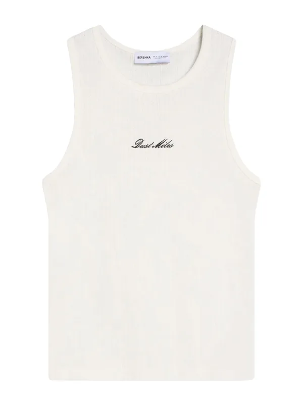 Design: Gevoerde zoom/rand, Geribbelde kraag, Rechte zoom, Nektape; Materiaal: Katoen; Halstype: Ronde hals; Motief: Tekst print; Extra's: Op staal naden, Voelt zacht aan, Huidvriendelijk materiaal; Pasvorm: Slanke pasvorm; Armlengte: Mouwloos; Lengte: Normale lengte