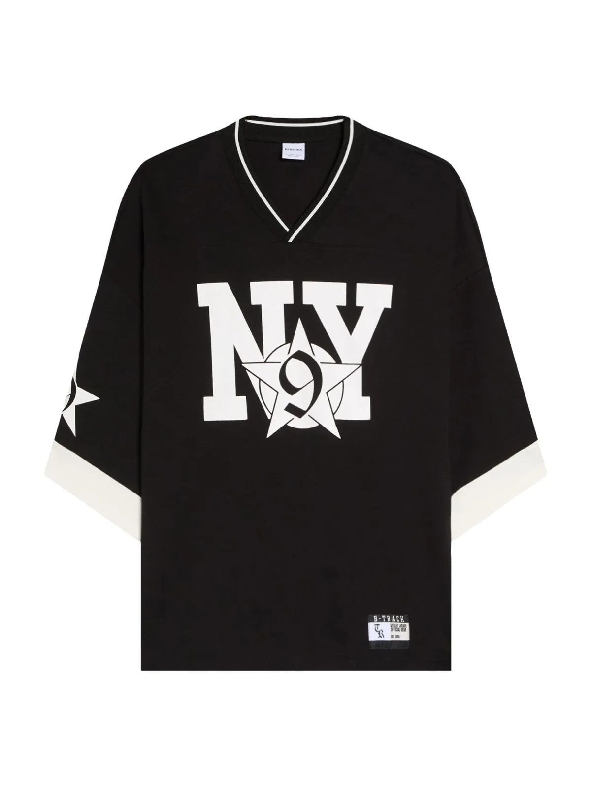 Design: Gevoerde zoom/rand, Geribbelde kraag, Rechte zoom, Overcut schouder, Nektape; Materiaal: Jersey; Halstype: V-hals; Motief: Tekst print; Extra's: Label patch/label flag, Op staal naden, Huidvriendelijk materiaal; Pasvorm: Wijde pasvorm; Armlengte: Halve mouw; Lengte: Normale lengte