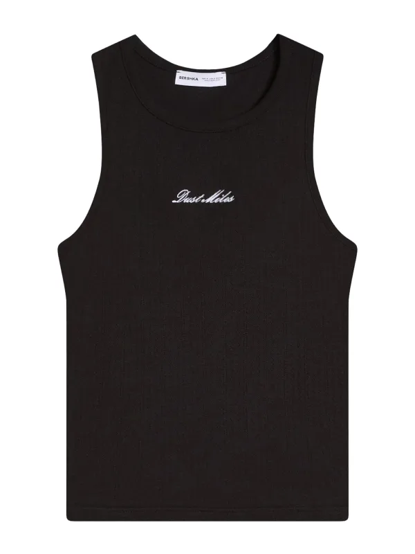 Design: Gevoerde zoom/rand, Rechte zoom, Nektape; Materiaal: Katoen; Halstype: Ronde hals; Motief: Tekst print; Extra's: Op staal naden, Voelt zacht aan; Pasvorm: Slanke pasvorm; Armlengte: Mouwloos; Lengte: Normale lengte