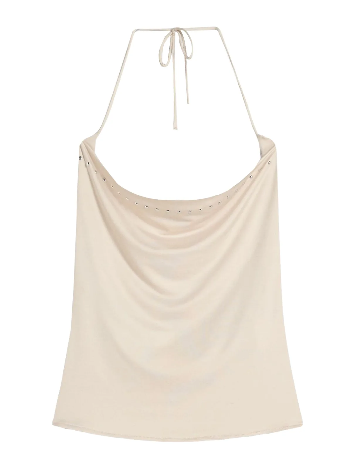 Design: Gevoerde zoom/rand, Om te knopen/binden; Materiaal: Gerecycled materiaal; Halstype: Watervalhals; Motief: Effen; Soort bandjes: Haltermodel; Extra's: Studs, Op staal naden, Voelt zacht aan; Pasvorm: Slanke pasvorm; Armlengte: Mouwloos; Lengte: Korte pasvorm