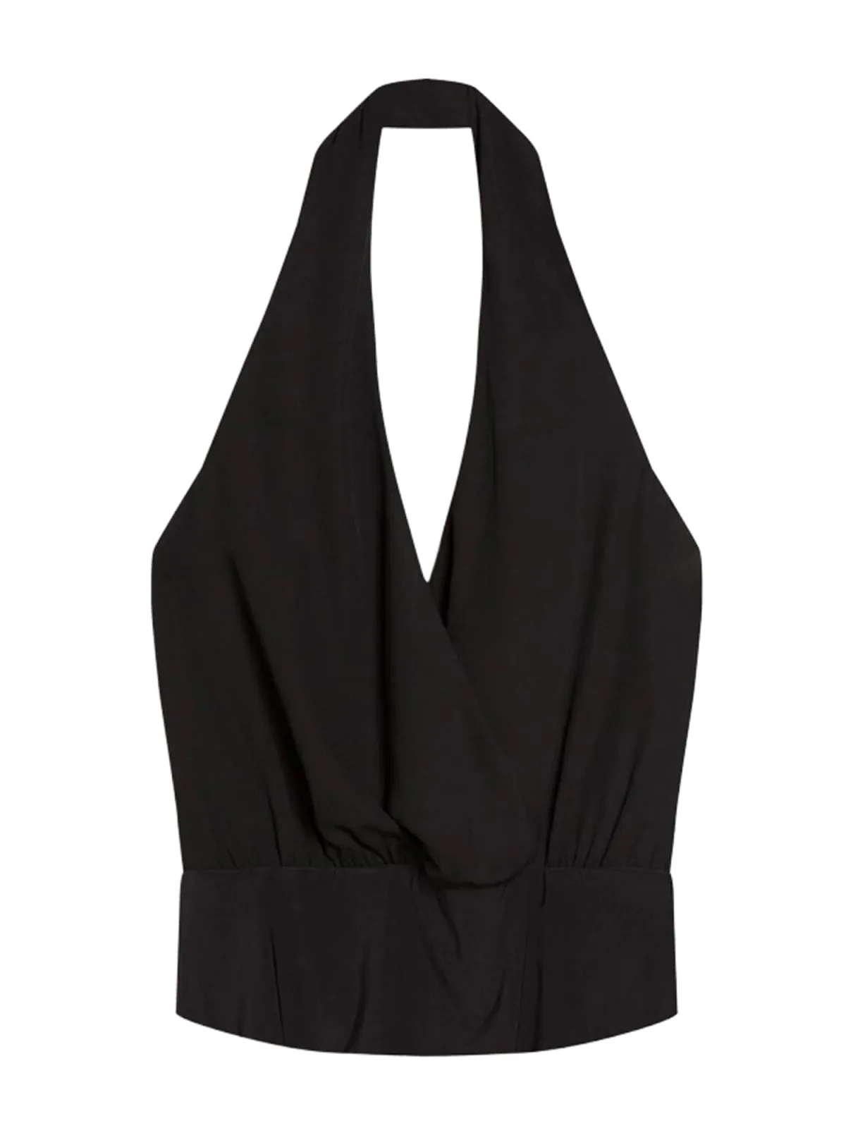 Design: Elastische taille/zoom, Rechte zoom, Diepe snit/decolleté; Materiaal: Jersey; Halstype: Wikkeltop; Motief: Effen; Soort bandjes: Haltermodel; Details: Gedrapeerd, Backless; Extra's: Op staal naden, Voelt zacht aan; Pasvorm: Slanke pasvorm; Armlengte: Mouwloos; Lengte: Korte pasvorm