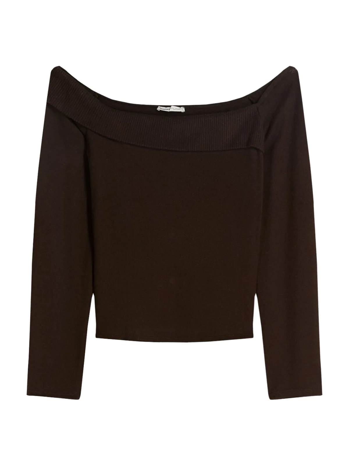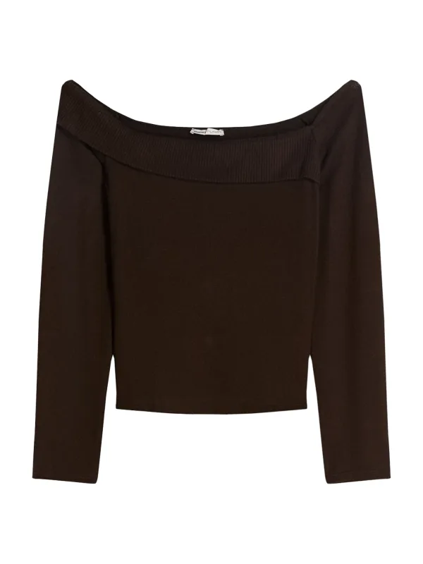 Design: Geribd ceintuurtje, Overcut schouder; Materiaal: Knitwear; Halstype: Carmen hals; Motief: Effen; Extra's: Fully fashioned, Met textuur; Pasvorm: Slanke pasvorm; Armlengte: Lange mouw; Lengte: Normale lengte