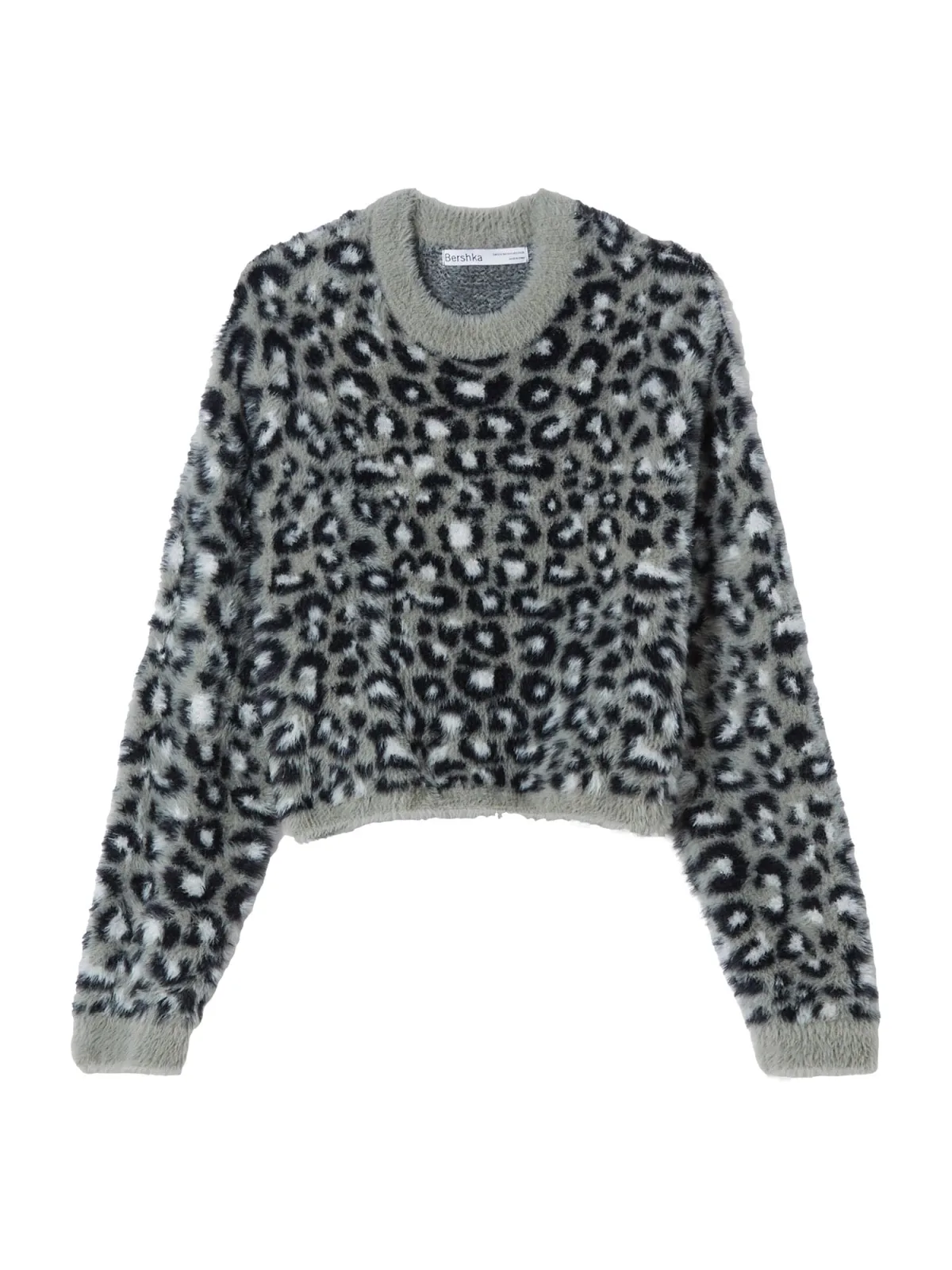 Design: Geribbelde kraag, Rechte zoom, Geribd ceintuurtje; Halstype: Ronde hals; Motief: Dierenprint; Extra's: All-over patroon, Gestructureerd oppervlak; Pasvorm: Normale pasvorm; Armlengte: Lange mouw; Lengte: Normale lengte