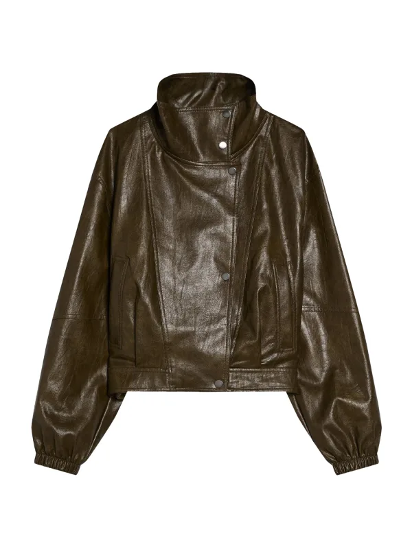 Design: Staande kraag, Zakken aan de zijkant; Type sluiting: Drukknoop; Type jas: Bikerjack; Voering: Licht gevoerd; Materiaal: Imitatieleder; Motief: Effen; Extra's: Glanzend, Gladde stof; Pasvorm: Normale pasvorm