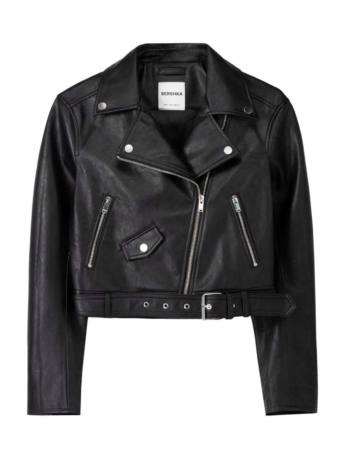 Design: Revers kraag, Ritszakken aan de zijkant, Schuine rits, Verstelbare riemen; Type sluiting: Ritssluiting; Type jas: Bikerjack; Voering: Licht gevoerd; Materiaal: Imitatieleder; Motief: Effen; Extra's: Studs, Metalen oogjes, Riemlussen; Pasvorm: Normale pasvorm