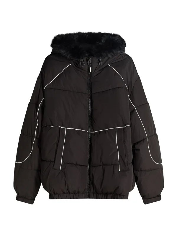 Design: Capuchon met opstaande kraag, Paspelering, Overcut schouder, Zakken aan de zijkant, Verstelbare capuchon; Type sluiting: Ritssluiting; Type jas: Gewatteerde jas; Voering: Warm gevoerd; Materiaal: Gerecycled materiaal; Motief: Effen; Extra's: Met faux bont trim, Zware stof; Pasvorm: Losse pasvorm