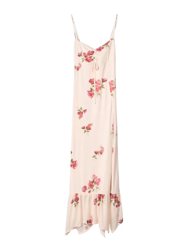 Design: Gevoerde zoom/rand, Diepe snit/decolleté; Halstype: V-hals; Motief: Bloemenprint; Soort bandjes: Spaghettibandjes; Details: Volant; Extra's: Verstelbare bandjes, All-over patroon; Lengte: 7/8 lengte; Snit: Uitlopend; Pasvorm: Normale pasvorm; Armlengte: Mouwloos
