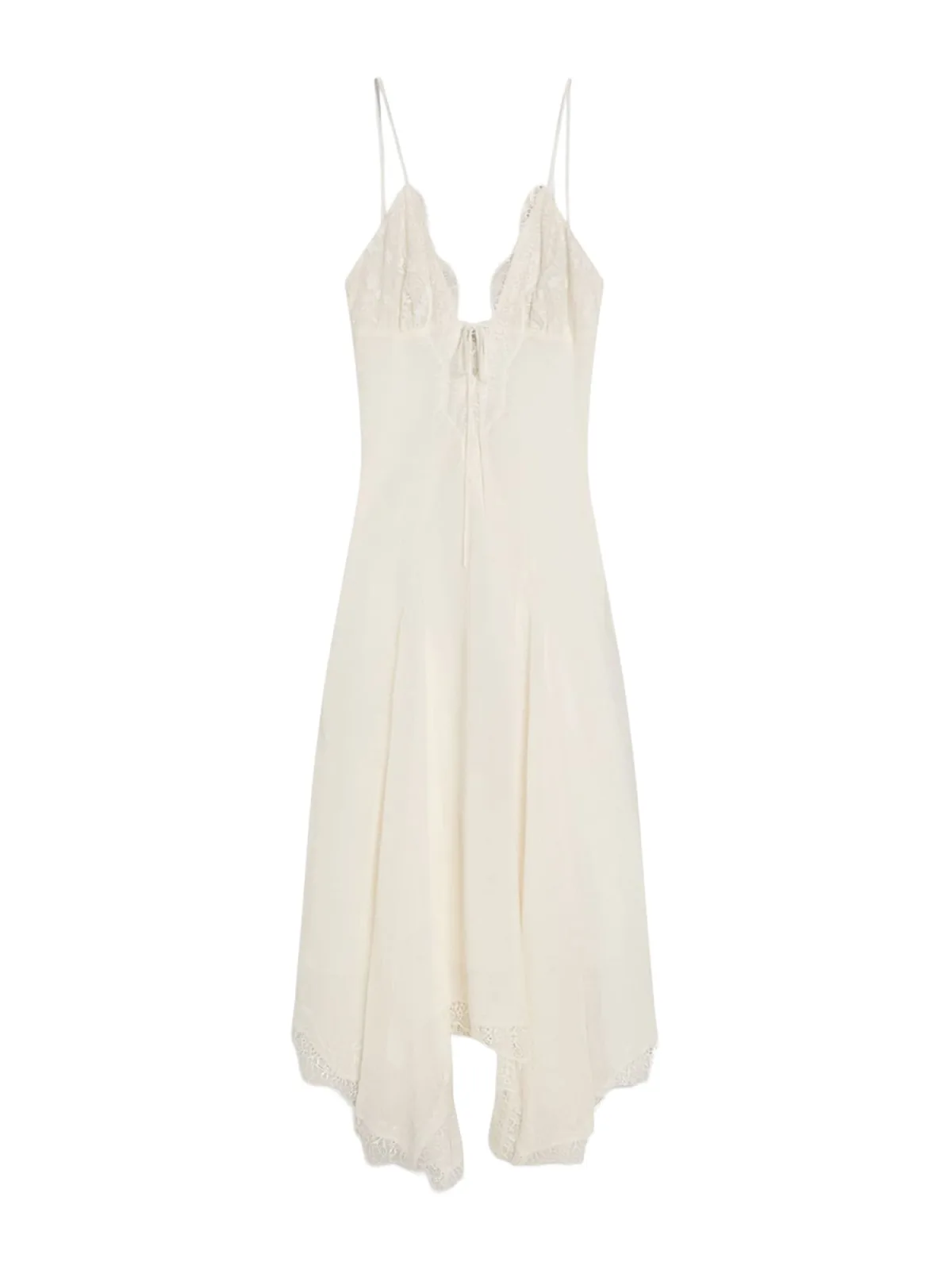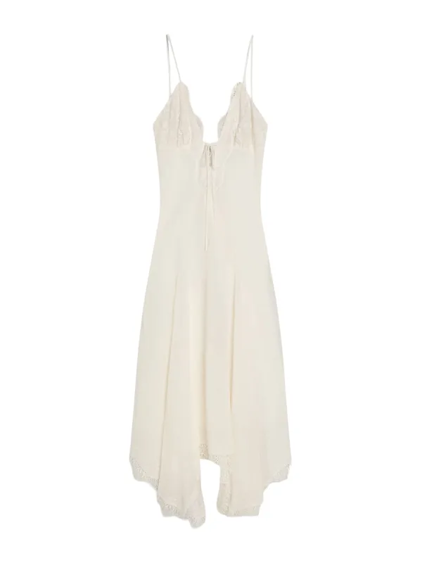 Design: Asymmetrische zoom, Met onderjurk, Om te knopen/binden; Motief: Effen; Soort bandjes: Spaghettibandjes; Details: Kant, Plooien, Backless; Extra's: Verstelbare bandjes, Op staal naden, Gladde stof, Lichte stof; Lengte: 3/4 lengte; Snit: Getailleerd; Pasvorm: Normale pasvorm; Armlengte: Mouwloos