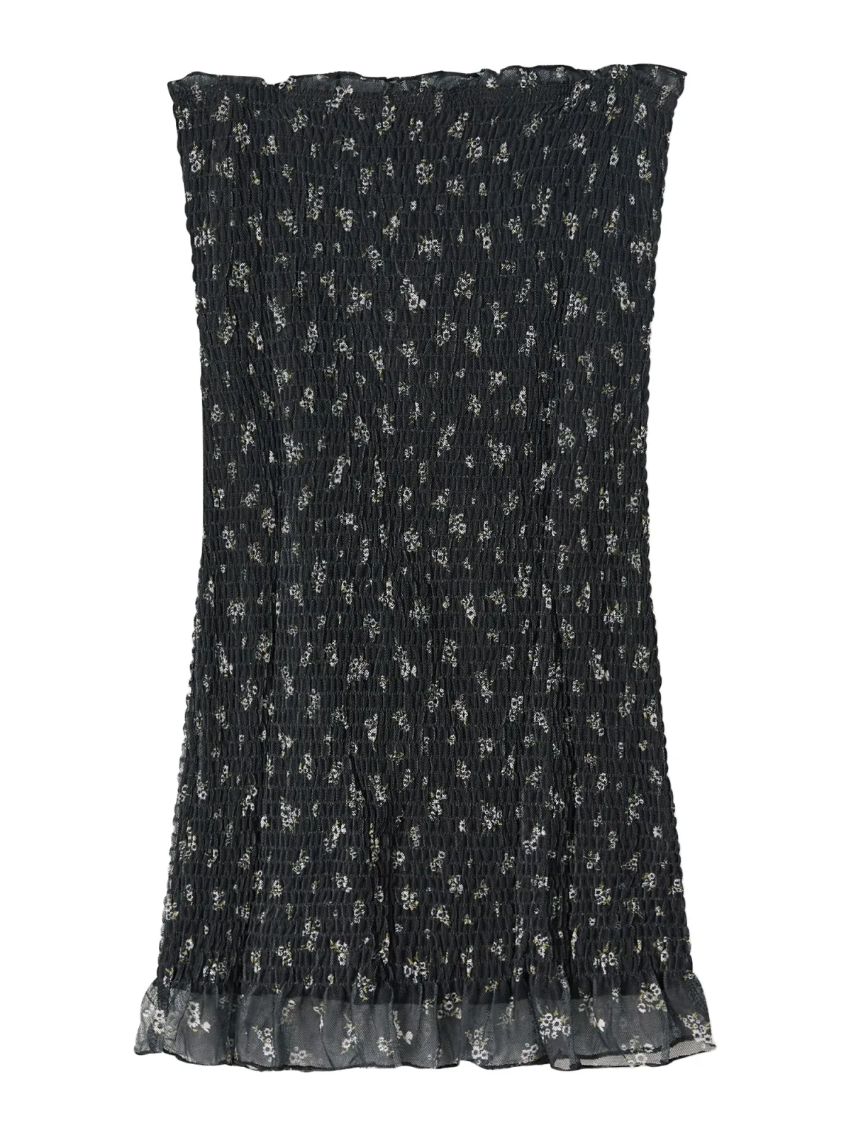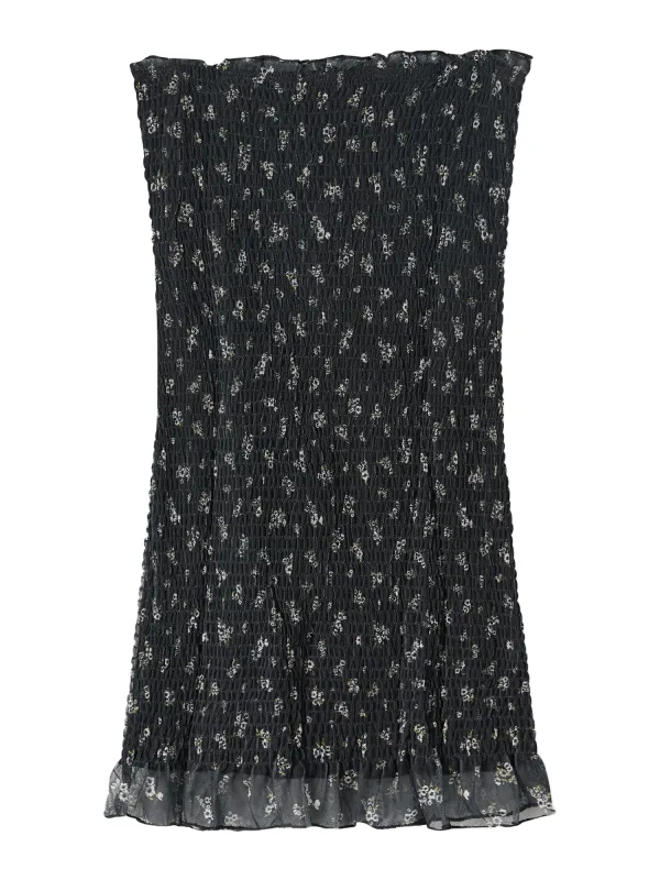 Design: Gevoerde zoom/rand, Flare; Materiaal: Gerecycled materiaal; Soort bandjes: Bandeau; Details: Ruches, Gedrapeerd; Extra's: All-over patroon, Met textuur; Lengte: Kort/mini; Snit: Figuur omarmend; Pasvorm: Aansluitende pasvorm; Armlengte: Mouwloos