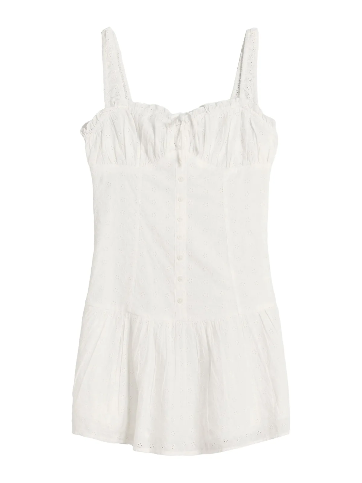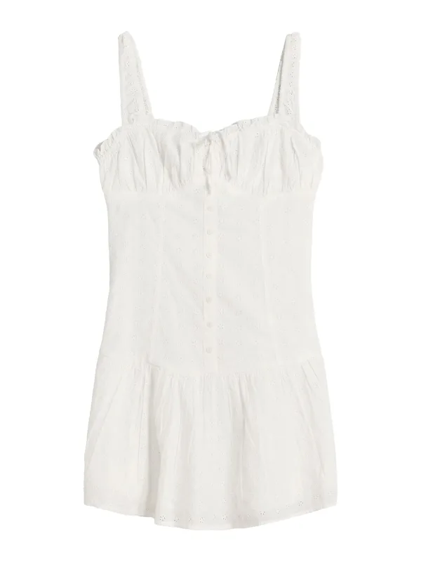 Design: Gevoerde zoom/rand, Placket, Om te knopen/binden; Type sluiting: Knoopsluiting; Materiaal: Katoen; Motief: Effen; Soort bandjes: Normale bandjes; Details: Ruches, Borduursels, Gedrapeerd, Mesh; Extra's: Op staal naden, Huidvriendelijk materiaal; Lengte: Kort/mini; Snit: Getailleerd; Pasvorm: Slanke pasvorm; Armlengte: Mouwloos