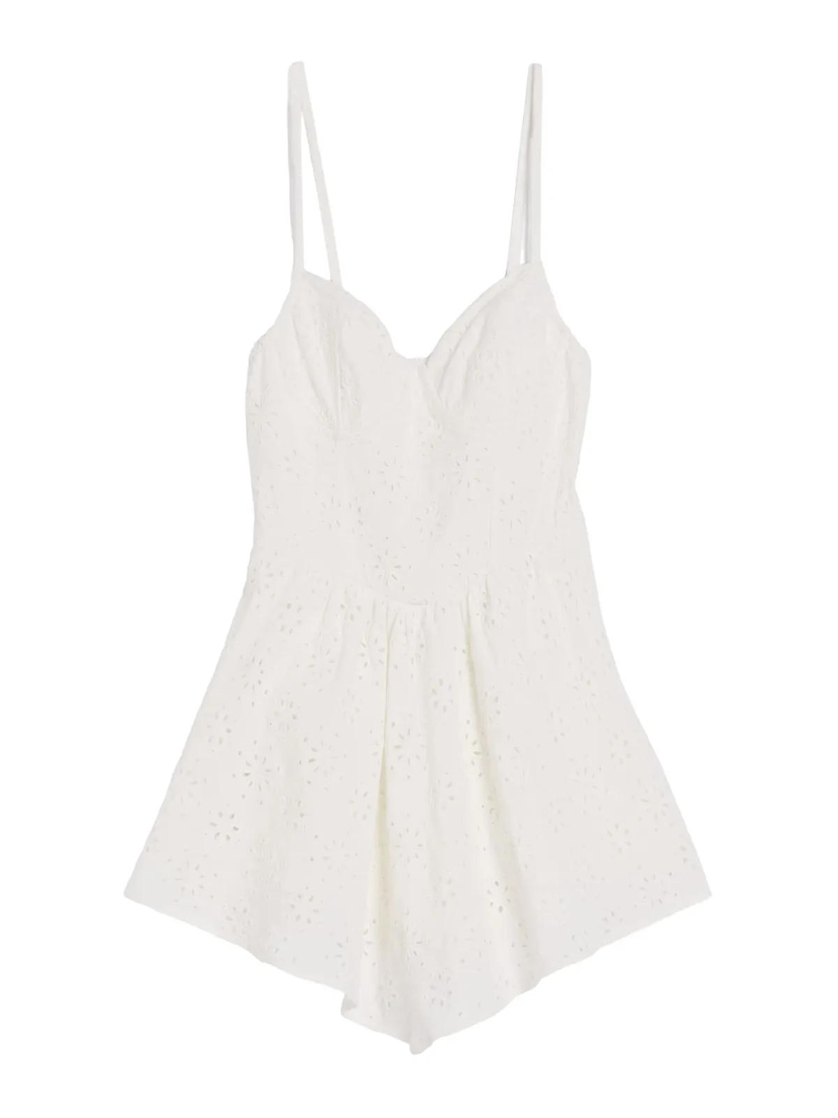 Design: Gevoerde zoom/rand, Diepe snit/decolleté; Materiaal: Katoen; Motief: Effen; Soort bandjes: Spaghettibandjes; Details: Borduursels, Mesh; Extra's: Op staal naden, Voelt zacht aan; Lengte: Kort/mini; Pasvorm: Normale pasvorm; Armlengte: Mouwloos