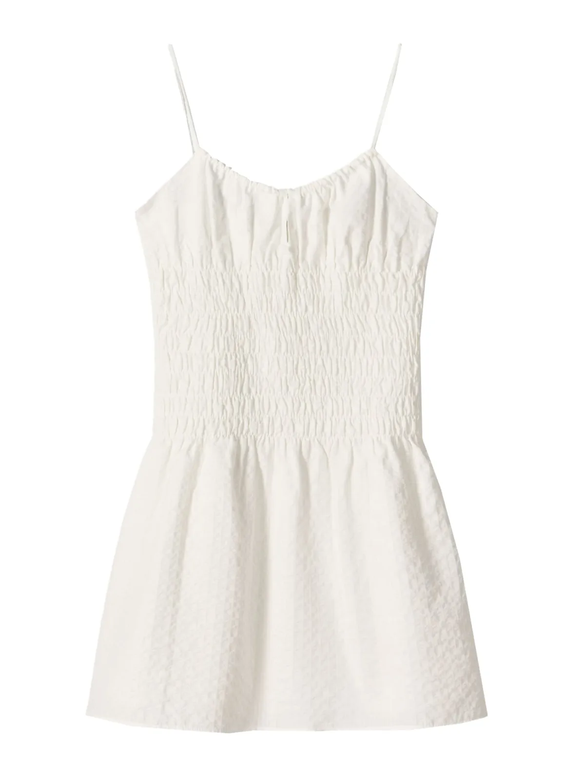 Design: Gevoerde zoom/rand, Om te knopen/binden; Halstype: Carréhals; Motief: Effen; Soort bandjes: Spaghettibandjes; Details: Cut-outs, Gedrapeerd; Extra's: Op staal naden, Gladde stof; Lengte: Kort/mini; Snit: Getailleerd; Pasvorm: Slanke pasvorm; Armlengte: Mouwloos